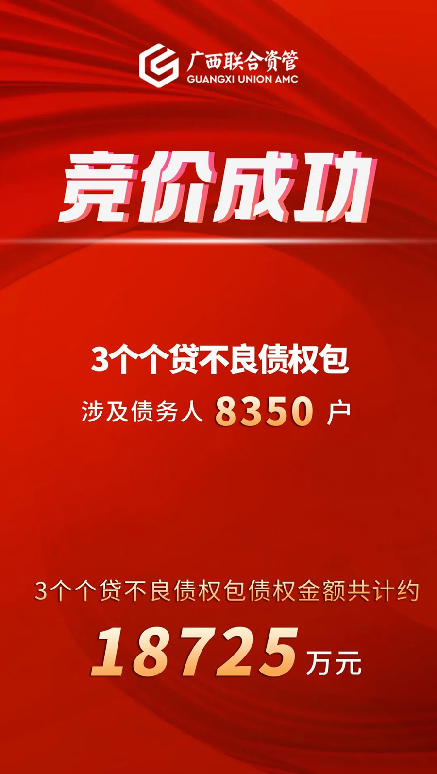 近日,乐天使fun88于银登中心成功竞拍3个个贷不良债权包,债权规模共计约18725万元,涉及债务人8350户。3个个贷不良债权包的成功竞拍,标志着乐天使fun88存量管理的债权总额不断扩大。当前,乐天使fun88已经实现了案件标准化运作,公司个贷不良处置业务体系愈加完善、业务开展愈加成熟、运营效率不断提升,并持续攻克异地处置、科技系统、征信直连三大业务难点。